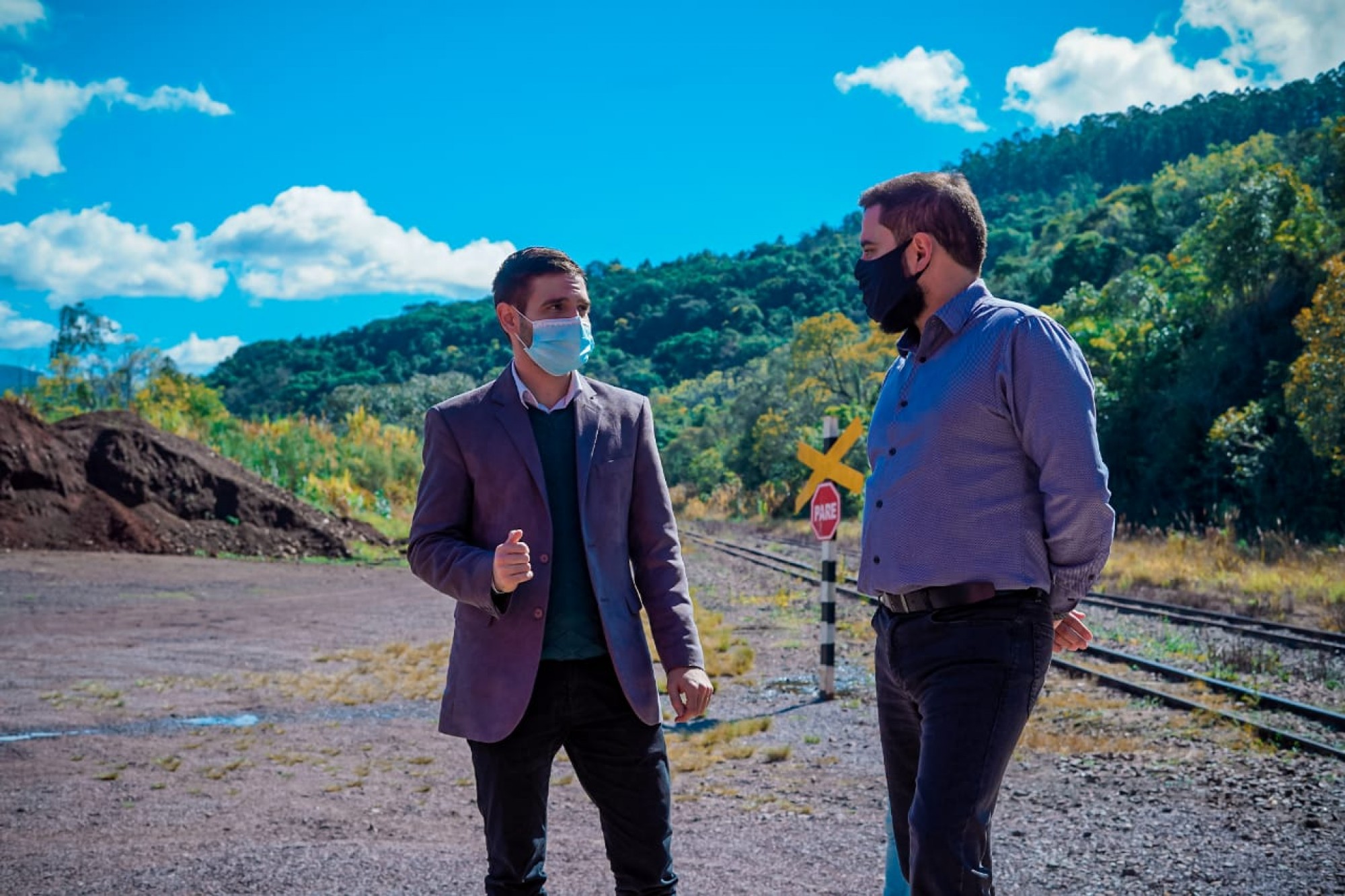 O presidente da Assembleia Legislativa do Estado do Rio Grande do Sul (AL-RS), Deputado Estadual Gabriel Souza, esteve em Muçum na manhã desta sexta-feira (7). Em visita ao gabinete do Poder Executivo Municipal e logo após a Estação Ferroviária de Muçum, o mandatário ouviu do prefeito, Mateus Giovanoni Trojan, agradecimento pelas vezes em que se colocou à disposição de solucionar as demandas municipais. Contudo, a pauta principal foi a execução do projeto Pelos Caminhos do Pão e do Vinho, iniciativa que pretende ligar o Vale do Taquari a Serra Gaúcha, por meio de pavimentação asfáltica entre os municípios de Muçum e Santa Tereza, através de trecho de domínio do município de Roca Sales.